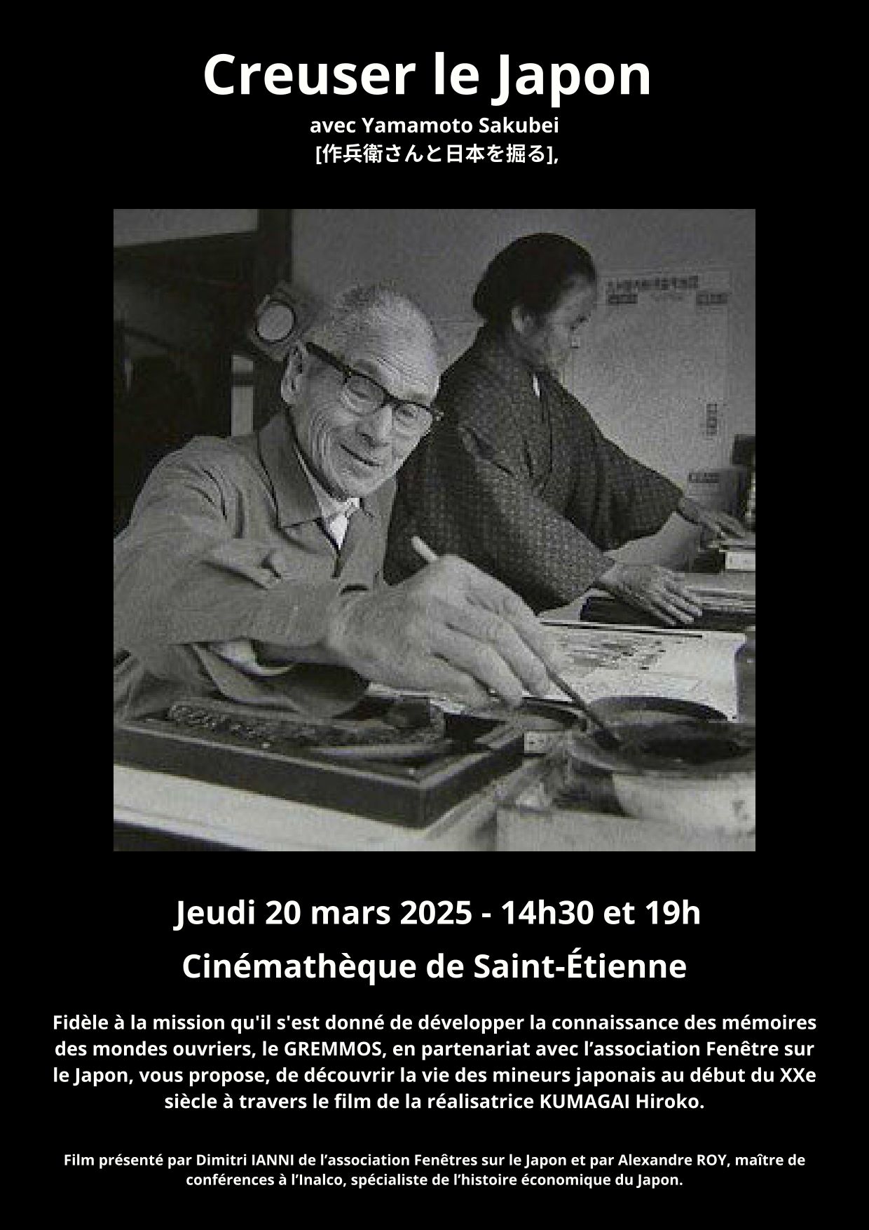 Fidèle à la mission qu'il s'est donné de développer la connaissance des mémoires des mondes ouvriers, le GREMMOS, en partenariat avec l’association Fenêtre sur le Japon, vous propose, de découvrir la vie des mineurs japonais au début du XXe siècle à travers le film de la réalisatrice KUMAGAI Hiroko.
